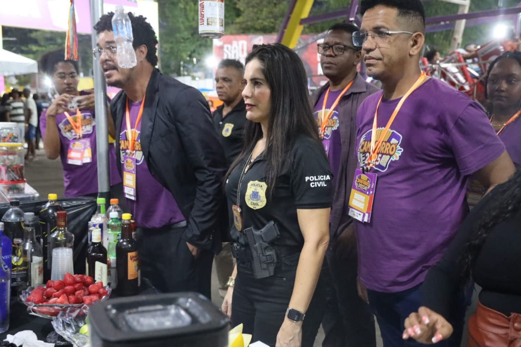 Equipes da 18ª Delegacia Territorial de Camaçari, em parceria com a Vara da Infância e da Juventude, Direitos Humanos e Secretaria de Desenvolvimento Social, fiscalizaram estabelecimentos comerciais no Espaço 2000, onde acontece o evento junino Camaforró, com o objetivo de coibir a venda de bebidas alcoólicas para menores de 18 anos.
