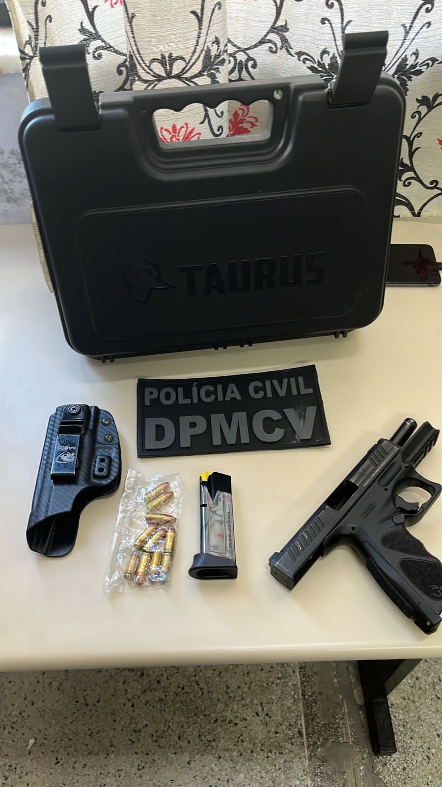O mandado de busca e apreensão foi expedido pela 5ª Vara de Violência Doméstica da Comarca de Salvador. A arma apreendida foi encaminhada à perícia e as investigações seguem.