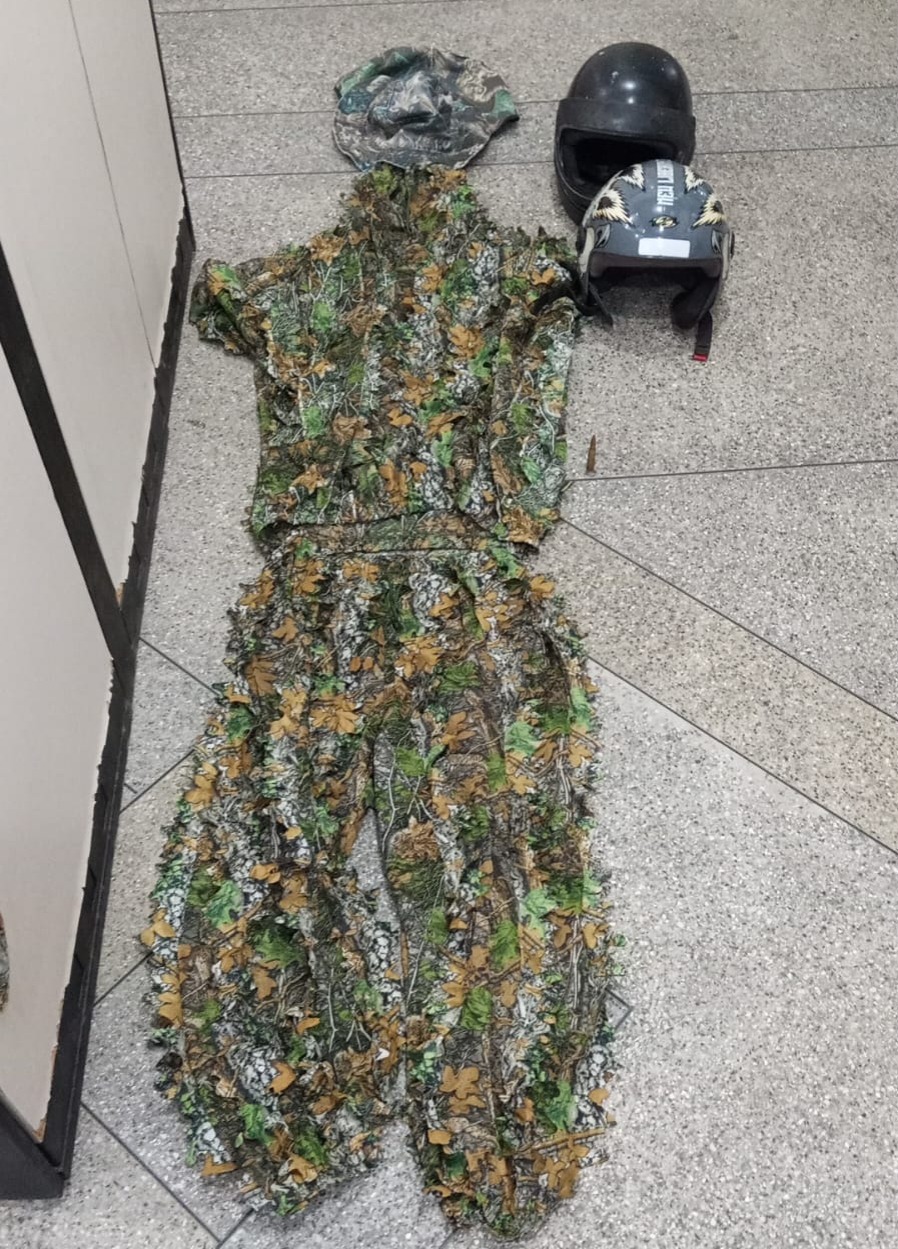 Além do veículo, a ação resultou na apreensão de capacetes, roupas camufladas e munição de calibre 7.62.