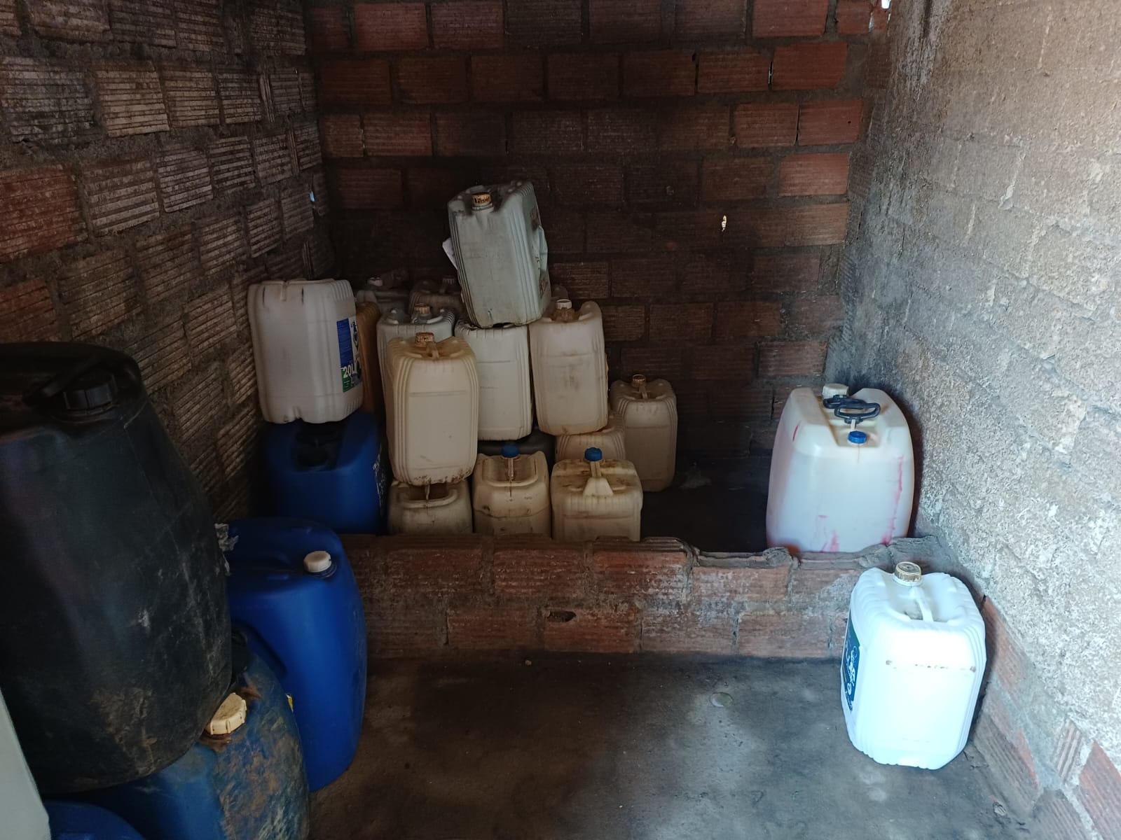 Cerca de 640 litros do material foram encontrados em vasilhames plásticos em um galpão