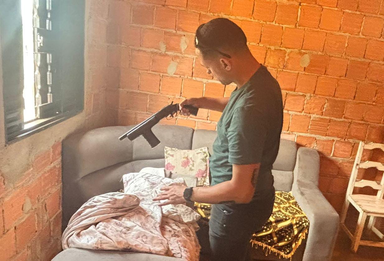 Em continuidade à diligência, os policiais foram até a residência do investigado, no Projeto Formoso H, zona rural do município de Serra do Ramalho, onde foram apreendidos uma espingarda calibre .12, munição do mesmo calibre, uma motocicleta com sinais de adulteração dos elementos identificadores e um aparelho celular.