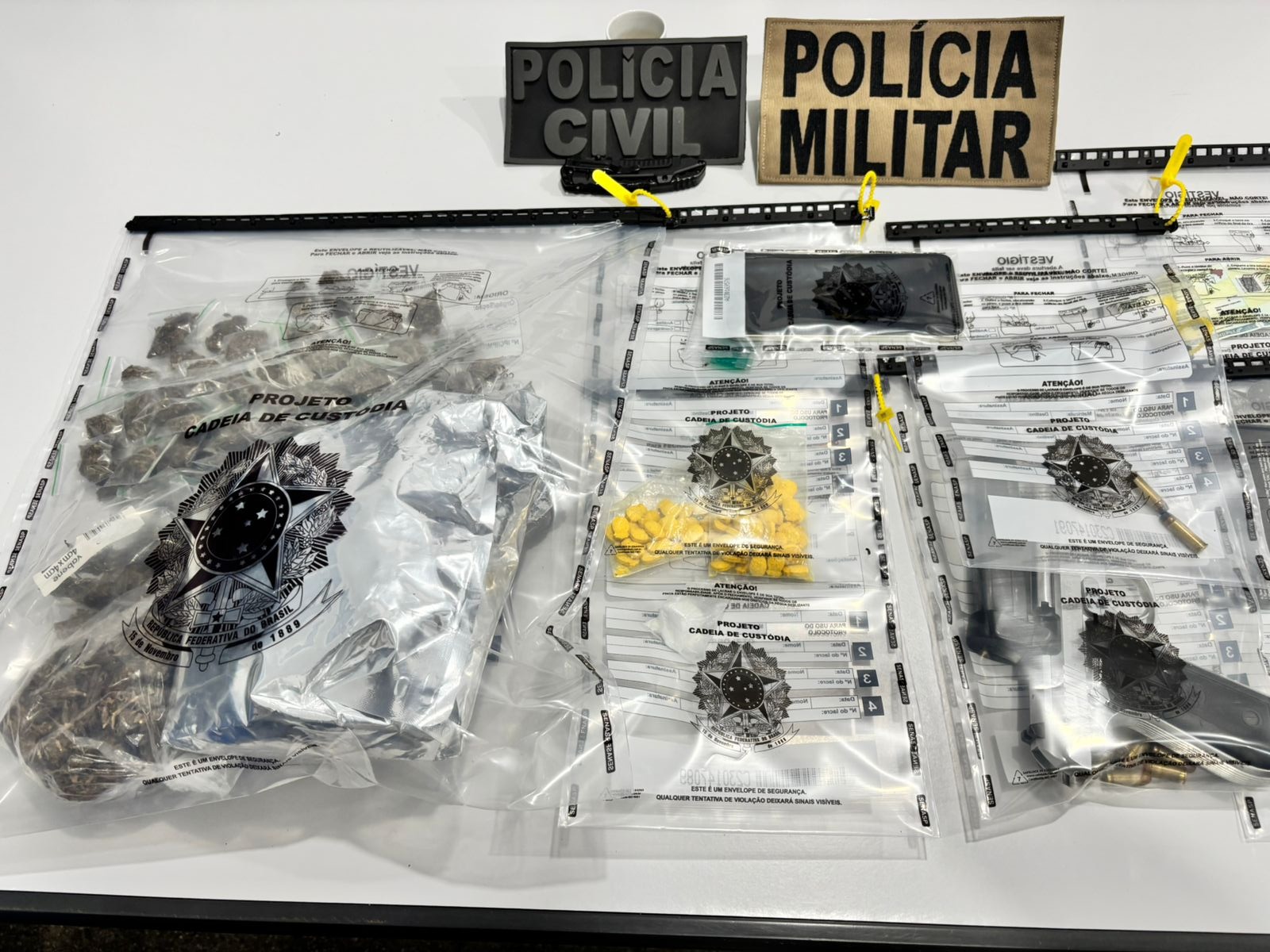 Durante as investigações, diversas residências foram identificadas como locais utilizados para a prática do tráfico de drogas, bem como o vínculo dos investigados com homicídios e tentativas ocorridos no município. No cumprimento dos mandados, os policiais localizaram, em um dos imóveis, uma pistola municiada, porções de maconha, cocaína, drogas sintéticas, munições e duas Carteiras Nacionais de Habilitação (CNHs) com indícios de falsificação.