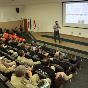 Policiais e bombeiros assistem palestra sobre câmeras corporais