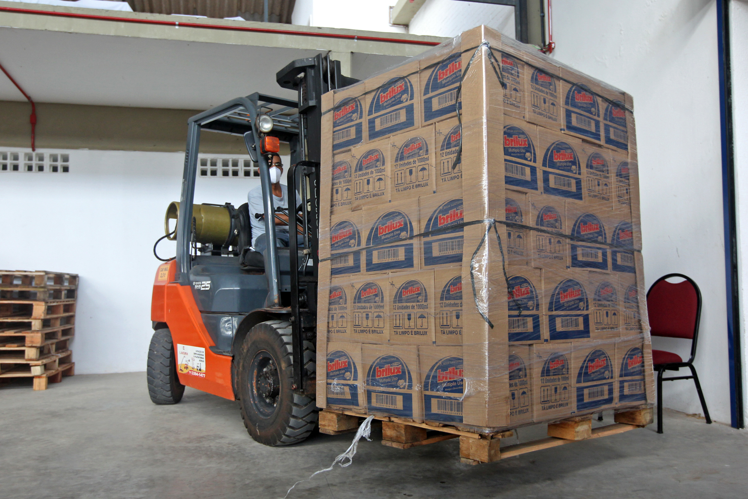 Mais 24 mil litros de água sanitária foram recebidos nesta quinta-feira (16), na Central de Doações do Governo do Estado, em Simões Filho, para ajudar no combate ao coronavirus na Bahia. Este é o segundo lote de doação das Indústrias Reunidas Raymundo da Fonte para o estado, que recebeu da empresa responsável pela marca Brilux, no início do mês, outros 24 mil litros do produto. O insumo será destinado às redes de saúde estadual e municipal, que integram as principais frentes de combate ao coronavírus (Covid-19) na capital e no interior. A doação da Raymundo da Fonte conta com o apoio das empresas Braskem, Alliance, Jaguar, Cobap e Penha, que forneceram as matérias-primas para a fabricação de todo material doado.