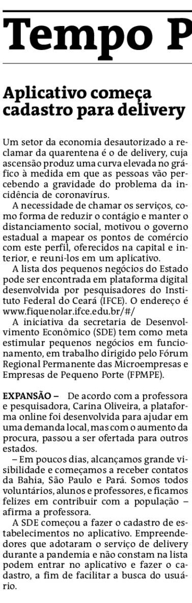 Aplicativo começa cadastro para delivery (Pauta SDE)
