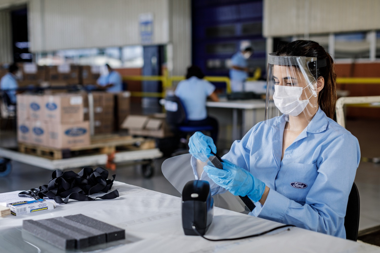 A Ford anunciou a produção de máscaras de proteção no início de abril. A meta inicial, de produzir 50 mil máscaras, foi ampliada para 110 mil por meio de uma parceria firmada com a EMBRAPII (Empresa Brasileira de Pesquisa e Inovação Industrial) e o SENAI Cimatec. Além das localidades já mencionadas, o estado de São Paulo e os municípios de Simões Filho (BA), Taubaté (SP) e Horizonte (CE) também figuram entre os próximos no Brasil a receber a doação dos equipamentos, por intermédio de seus órgãos públicos de saúde.