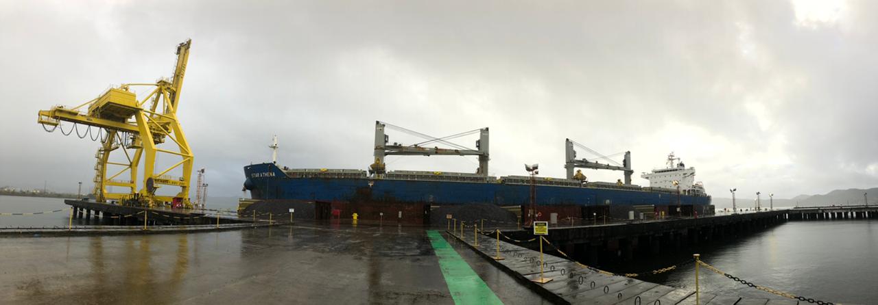 O navio Star Athena é um transportador de granéis construído em 2012 e com capacidade de carga de 57809 toneladas. Possui caladode 6,5 metros, comprimento total de 189,99 metros e largura de 32,26 metros. Após o carregamento, a embarcação segue com as 44 mil toneladas de minério baiano para a China.