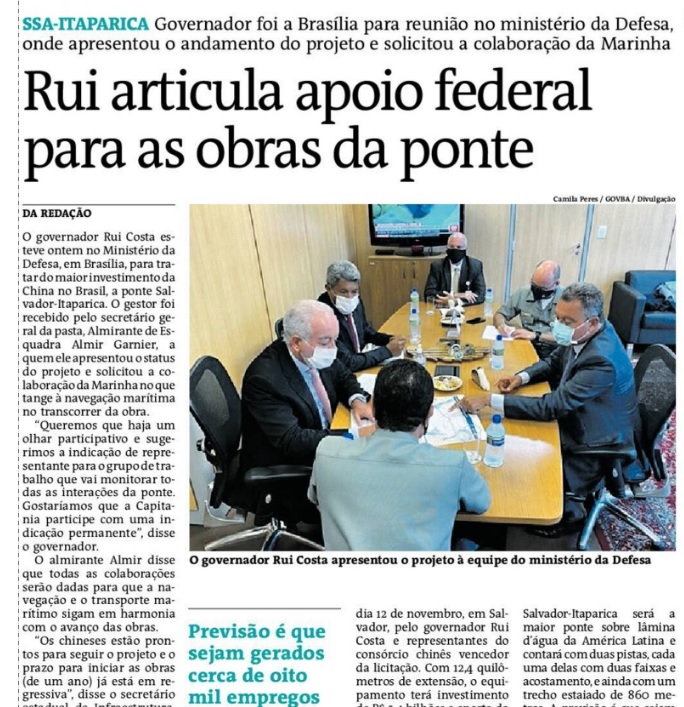 Governador pede apoio do Ministério da Defesa durante obras da ponte Salvador-Itaparica