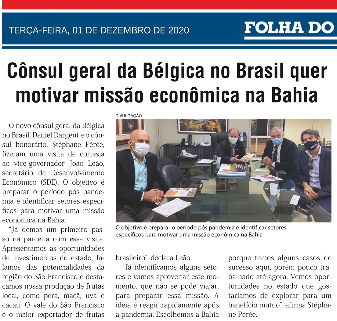 Cônsul geral da Bélgica no Brasil quer motivar missão econômica na Bahia