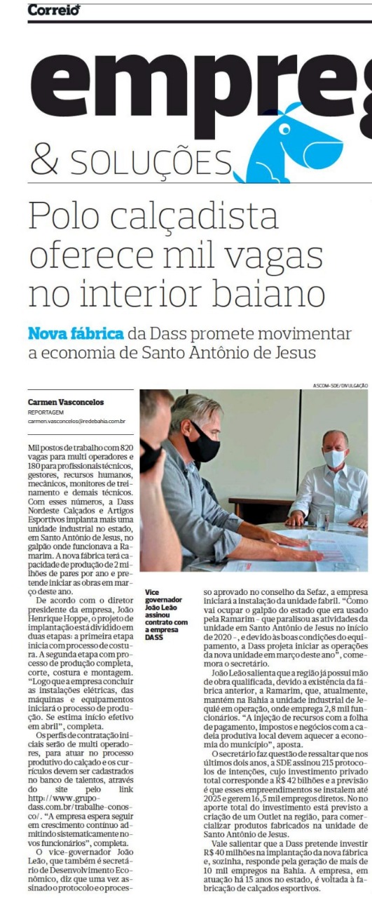 A nova fábrica da DASS contratará em março e promete movimentar economia na região de Santo Antônio de Jesus