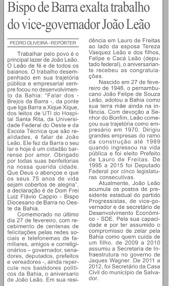 - Bispo de Barra exalta trabalho do vice-governador João Leão