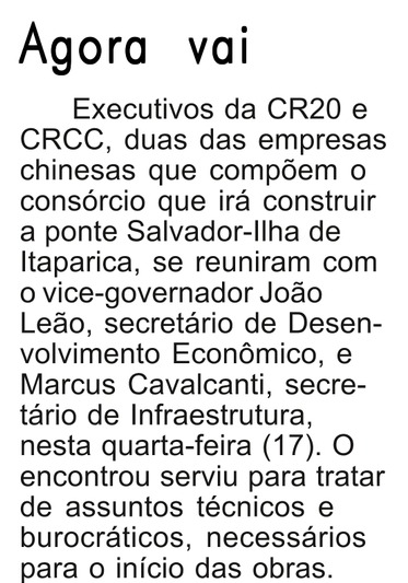 Executivos da CR20 e CRCC, duas das empresas chinesas que compõem o consórcio que irá construir a ponte Salvador-Ilha de Itaparica, se reuniram com o vice-governador João Leão, secretário de Desenvolvimento Econômico, e Marcus Cavalcanti, secretário de Infraestrutura, nesta quarta-feira (17). O encontrou serviu para tratar de assuntos técnicos e burocráticos, necessários para o início das obras.