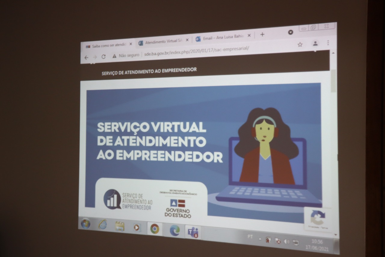 O Governo do Estado, em parceria com o Serviço Brasileiro de Apoio às Micro e Pequenas Empresas (Sebrae), realizou capacitações dos servidores do Serviço de Atendimento ao Empreendedor (SAE) das unidades municipais, com os seguintes órgãos parceiros: o Instituto Baiano De Metrologia E Qualidade (Ibametro), Junta Comercial Do Estado Da Bahia (Juceb), Desenbahia, Sebrae, Secretaria da Administração (Saeb) e a Secretaria de Desenvolvimento Econômico (SDE). Para isso, utilizou plataformas online entre os dias 11 e 17 de junho.