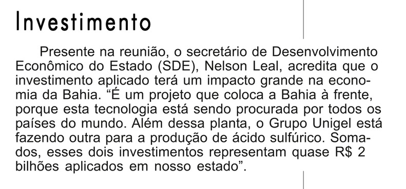 Um protocolo de intenções para a implantação de uma fábrica de amônia verde na Bahia foi assinado, nesta quarta-feira (1), pelo governador Rui Costa e representantes da empresa Proquigel Química, no Salão de Reuniões da Governadoria, em Salvador. A estimativa é que R$ 1,4 bilhão seja investido no projeto, gerando cerca de mil empregos diretos e indiretos. A previsão é que a unidade de produção, que será instalada em Camaçari, entre em operação até o fim de 2022.