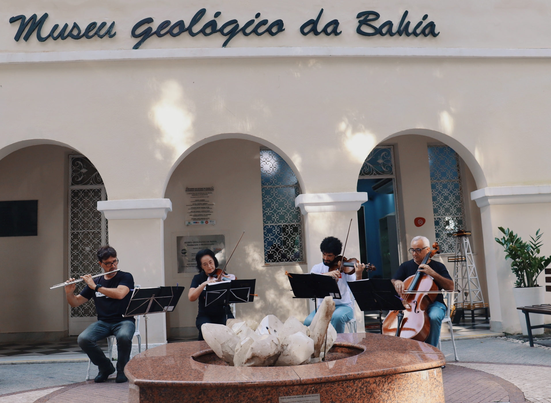 A Camerata Quarteto Novo, da Orquestra Sinfônica da Bahia (OSBA), abriu a programação da 21ª Semana Nacional de Museus do Museu Geológico da Bahia (MGB) nesta terça-feira (16). E para os fãs das Terças Musicais, uma boa notícia, a apresentação marca o retorno do projeto ao local, que no próximo mês voltará à primeira terça-feira do mês. A programação da semana continua e a entrada é gratuita.