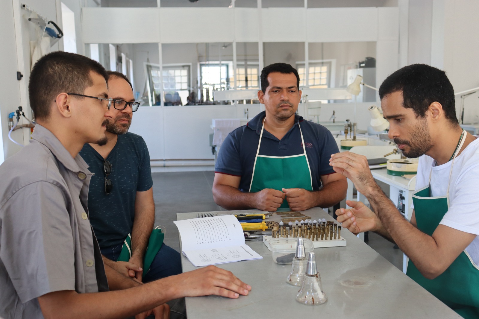Durante o seminário e a oficina, os participantes tiveram acesso às aulas teóricas e práticas. O processo de abertura de facetas de uma pedra, polimento, facetamento, transferência e calibragem da coroa foram uns dos métodos utilizados. Além da finalização da pedra, com os procedimentos de serrar, formar e colar.