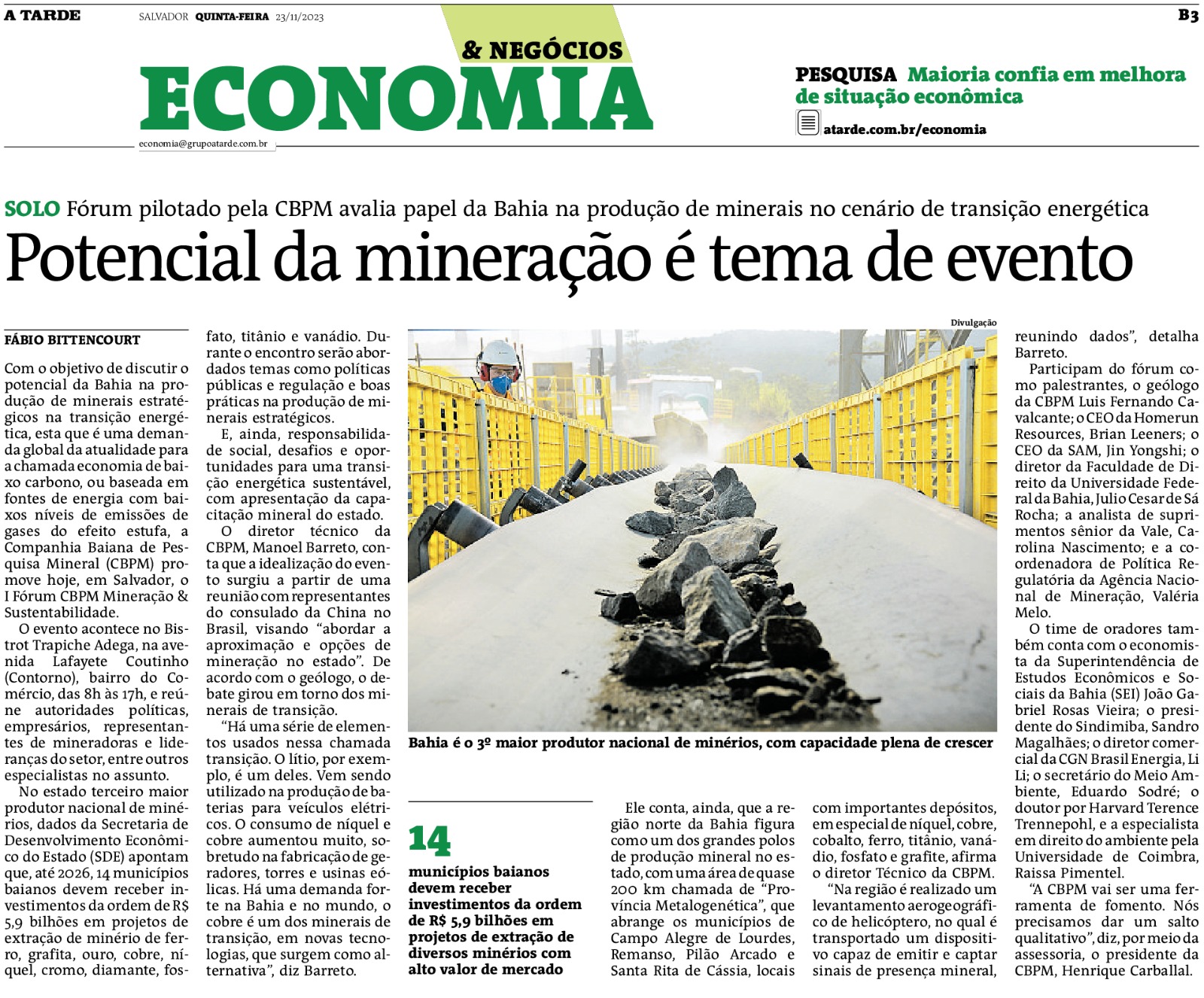 Evento da CBPM avalia papel da Bahia na produção de minerais importantes para a transição energética