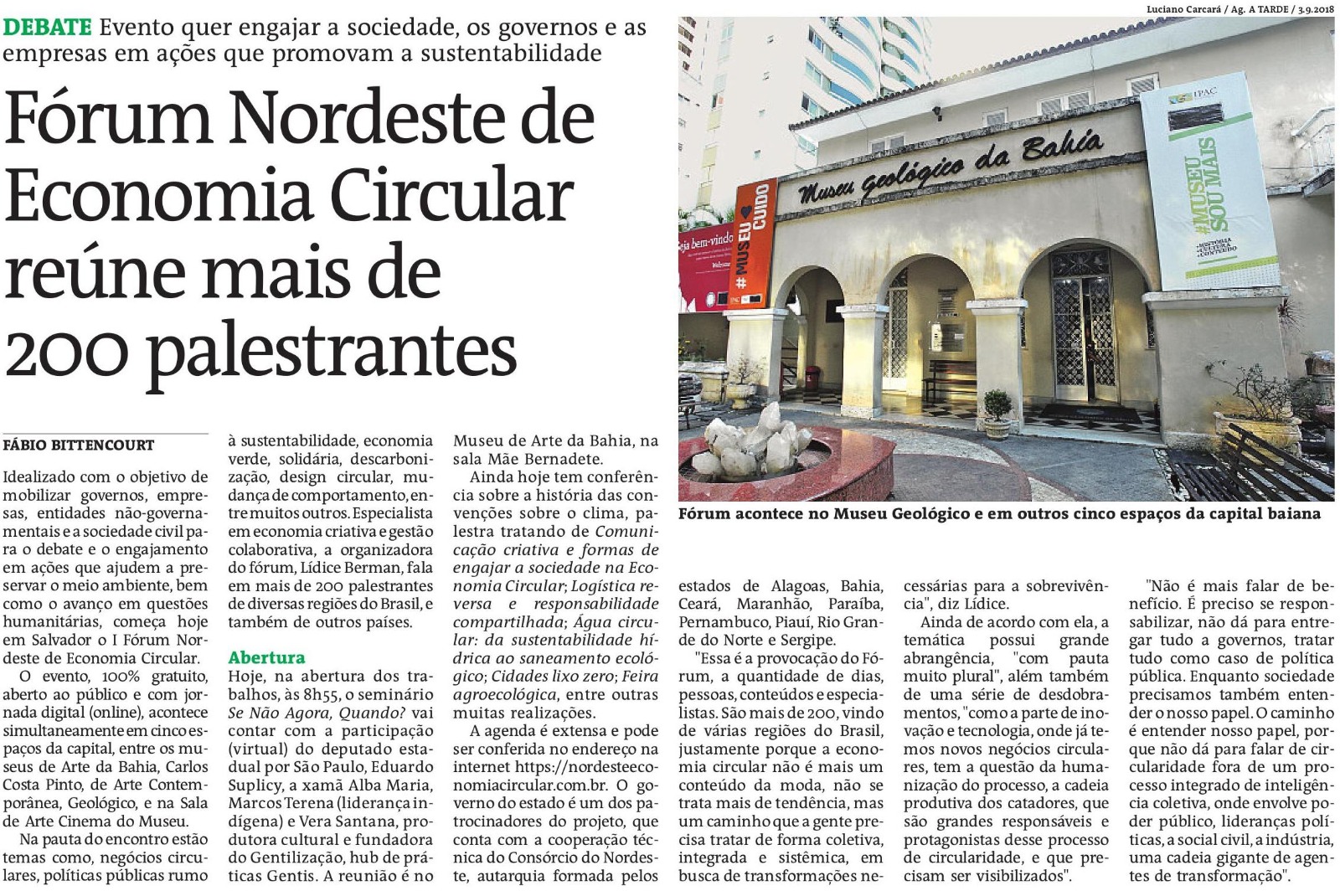 O Governo do Estado da Bahia, através da Secretaria de Desenvolvimento Econômico (SDE), em parceria com o movimento Reinventando Futuros e do Instituto IDI, vem, através desta, convidar para a Cerimônia de Abertura Institucional do I Fórum Nordeste de Economia Circular, a realizar-se no dia 23 de novembro, às 9h, no SENAI CIMATEC, na Av. Orlando Gomes, Piatã, Salvador-BA, com a presença de autoridades e lideranças nacionais.