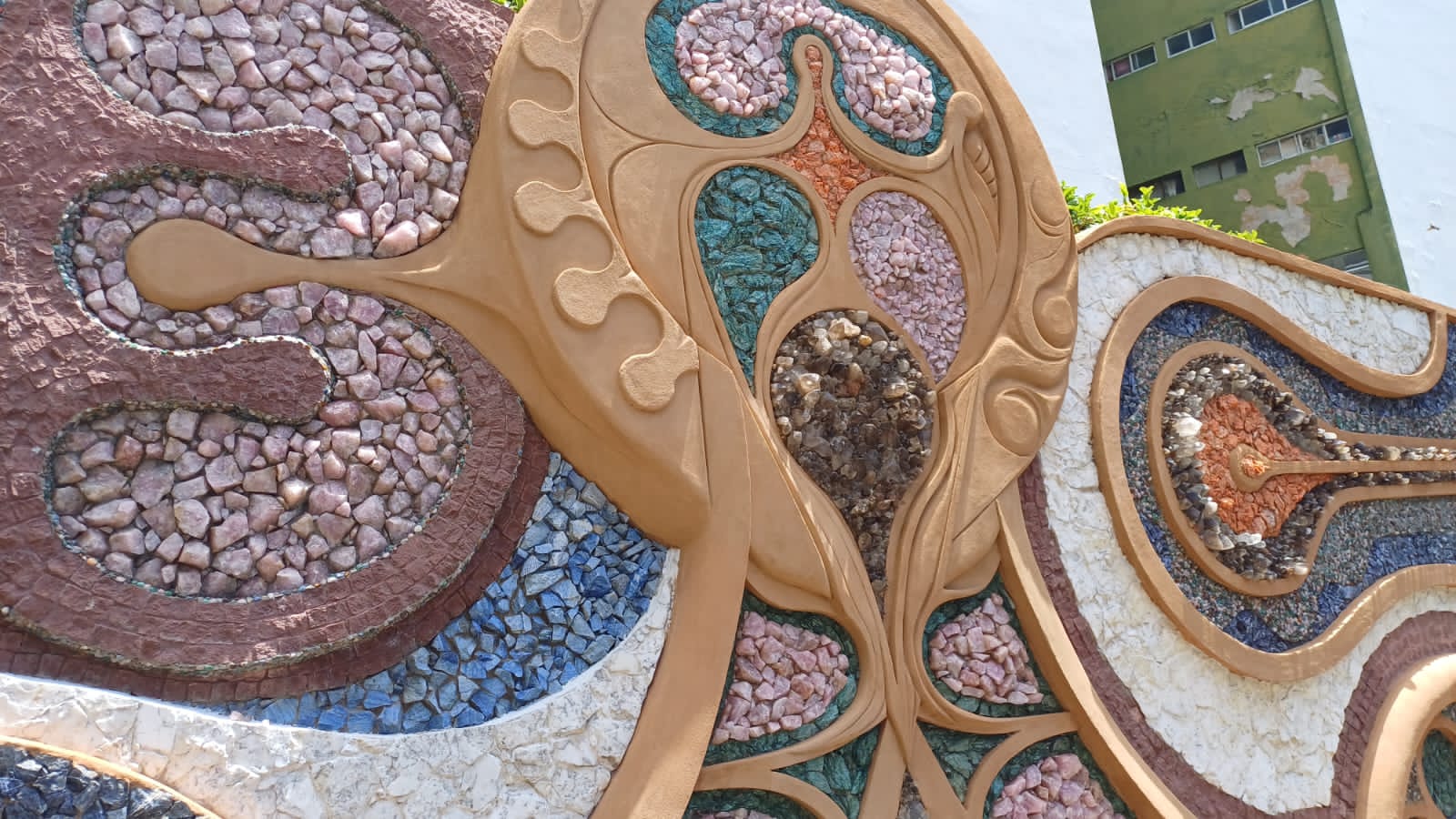 A Secretaria de Desenvolvimento Econômico (SDE) entregou, nesta quinta-feira (23), a restauração do mural Flor de Pedras, do artista baiano Juarez Paraíso, no Museu Geológico da Bahia (MGB), órgão gerido pela pasta, em Salvador. Criada em 1998, a obra aproxima a ciência da arte, representando, por meio de suas pétalas, diferentes recursos minerais encontrados no estado. Na oportunidade, o secretário Angelo Almeida concedeu ao artista uma placa em reconhecimento às suas contribuições para o desenvolvimento artístico e cultural da Bahia.