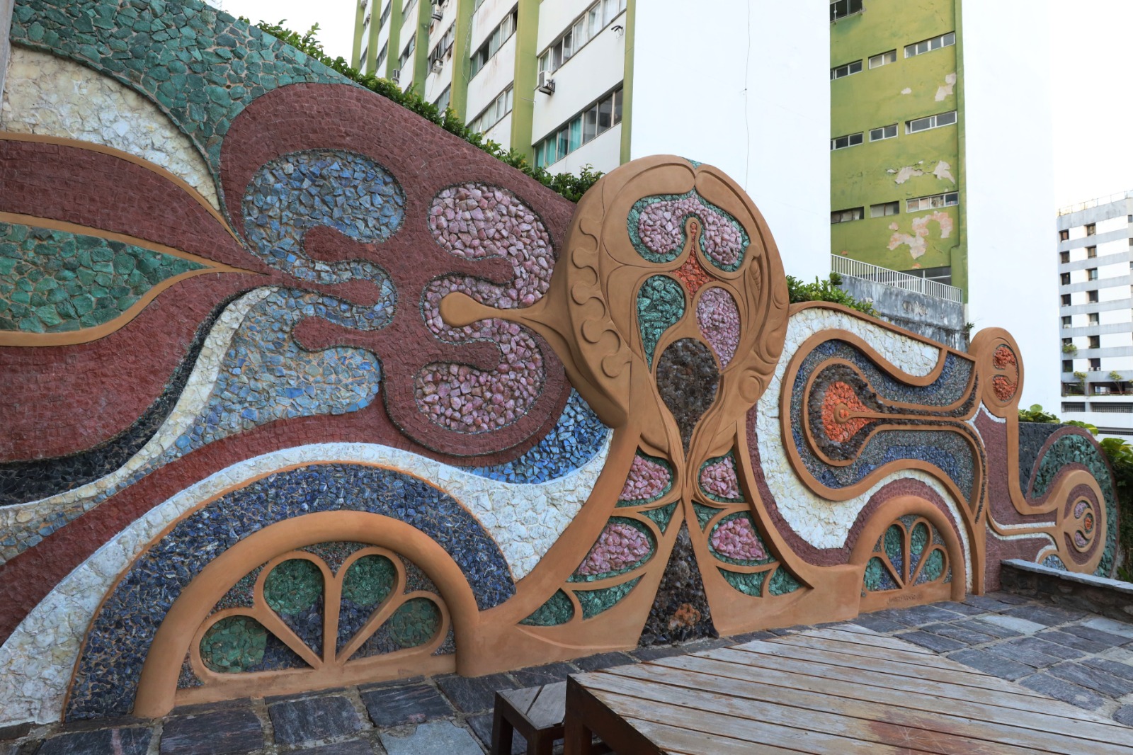 A obra está localizada no pátio do Museu Geológico da Bahia, no Corredor da Vitória, em Salvador