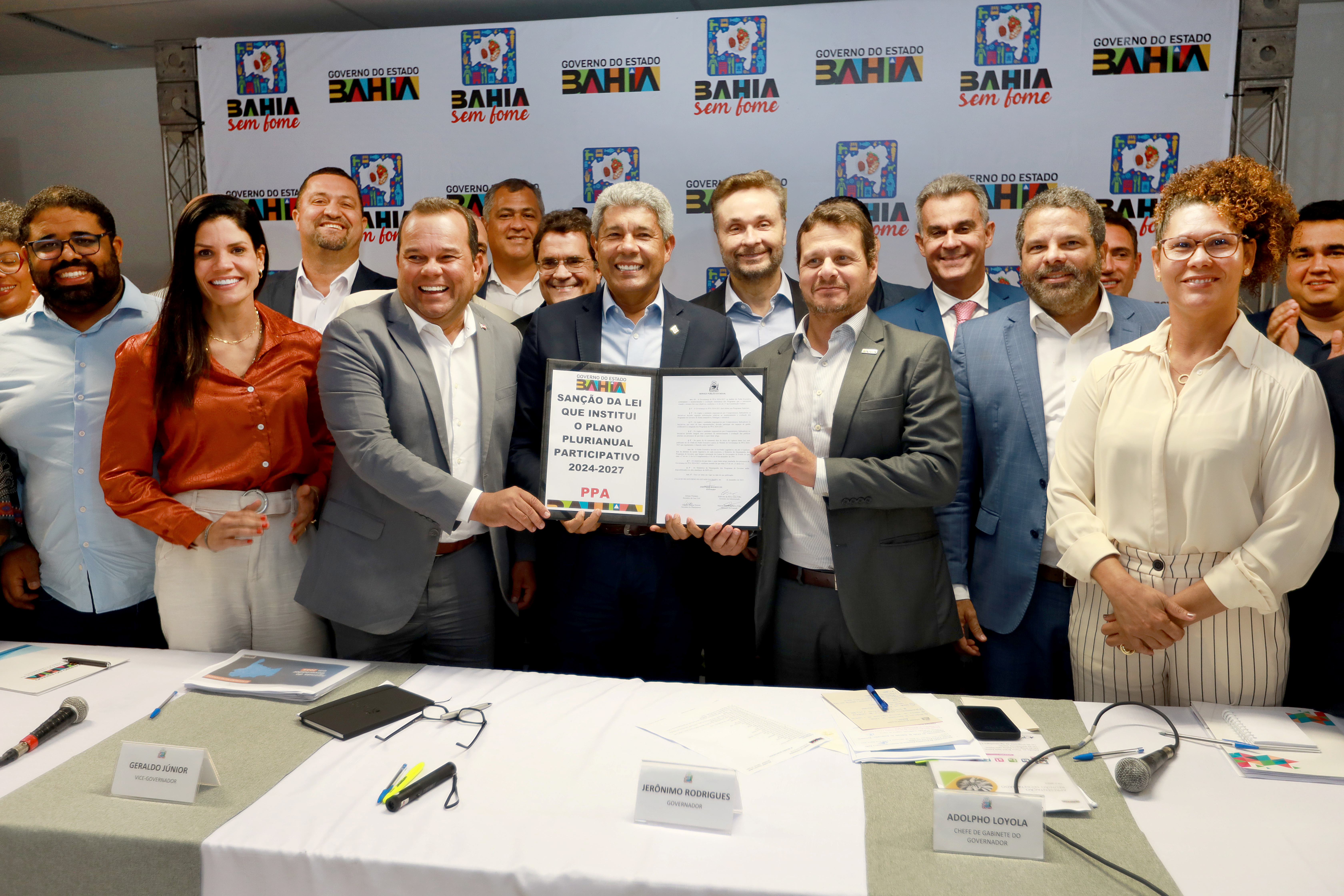 Durante o encontro, o governador sancionou a lei que institui o Plano Plurianual Participativo (PPA) da Bahia 2024-2027. O documento será publicado no Diário Oficial do Estado (DOE) desta quarta-feira (27). O plano foi construído a partir de 27 plenárias territoriais, com um total de 5.871 propostas, e contribuição das diversas secretarias e demais poderes da administração estadual. Estão previstos recursos da ordem de R$ 150 bilhões para execução dos programas e ações de governo nas diversas áreas, formados por compromissos, indicadores e iniciativas que guiarão a gestão estadual nos próximos quatro anos.