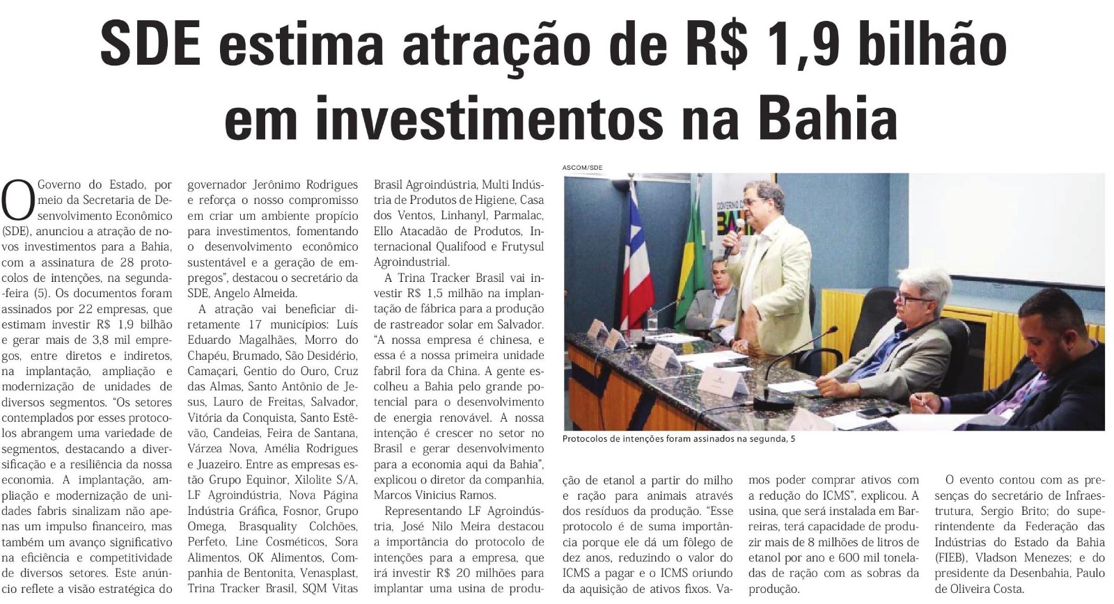 SDE estima atração de R$ 1,9 bilhão em investimentos na Bahia