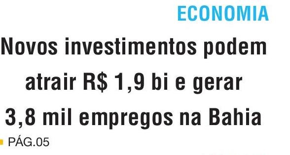 Novos investimentos podem atrair R$ 1,9 bi e gerar 3,8 mil empregos na Bahia