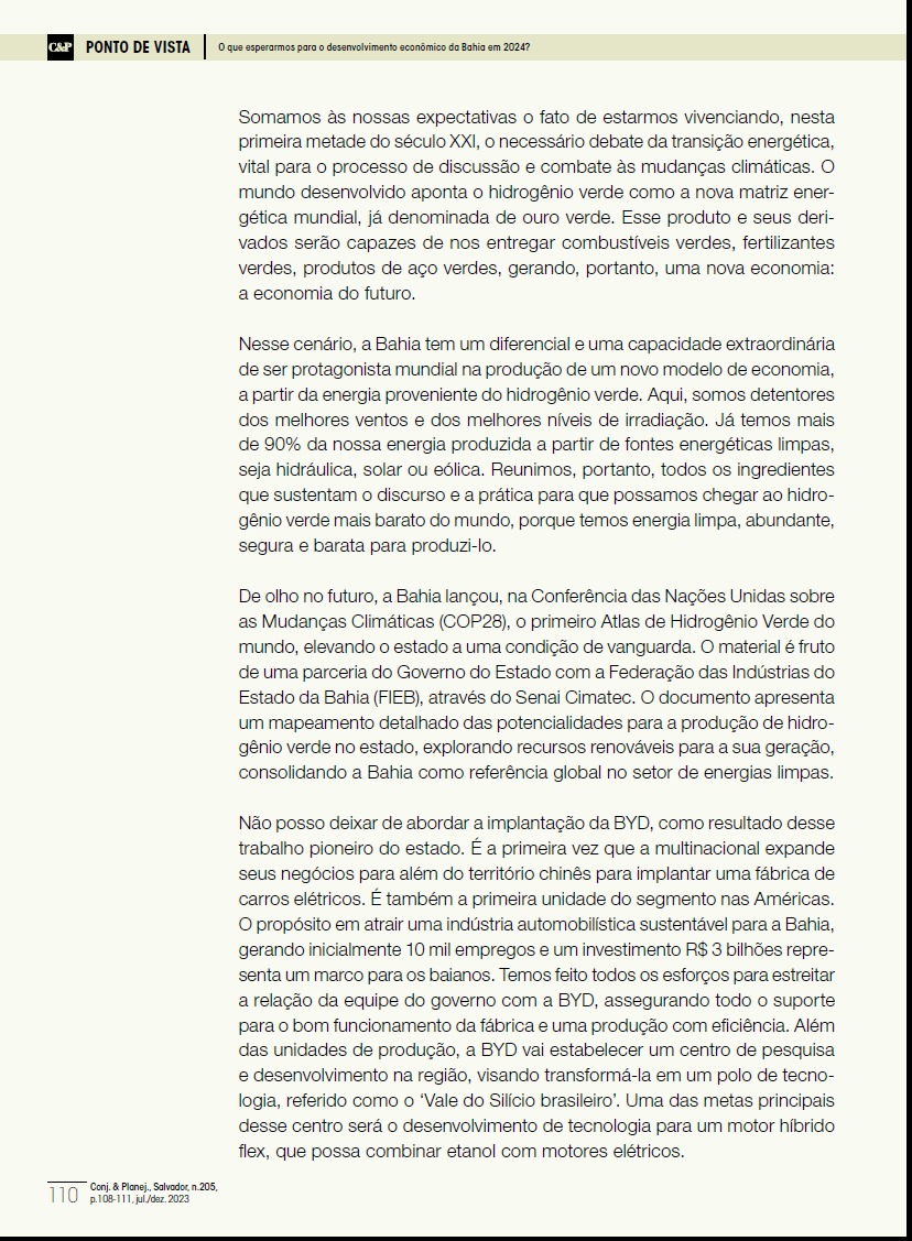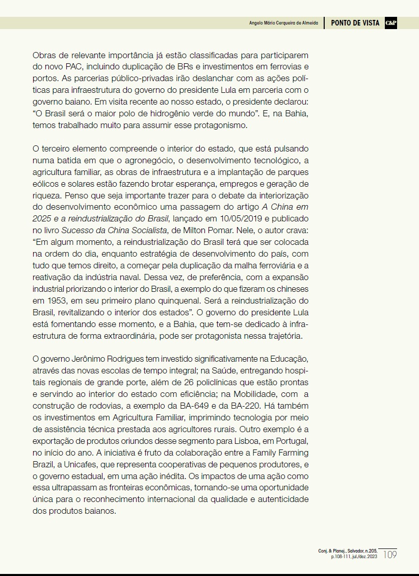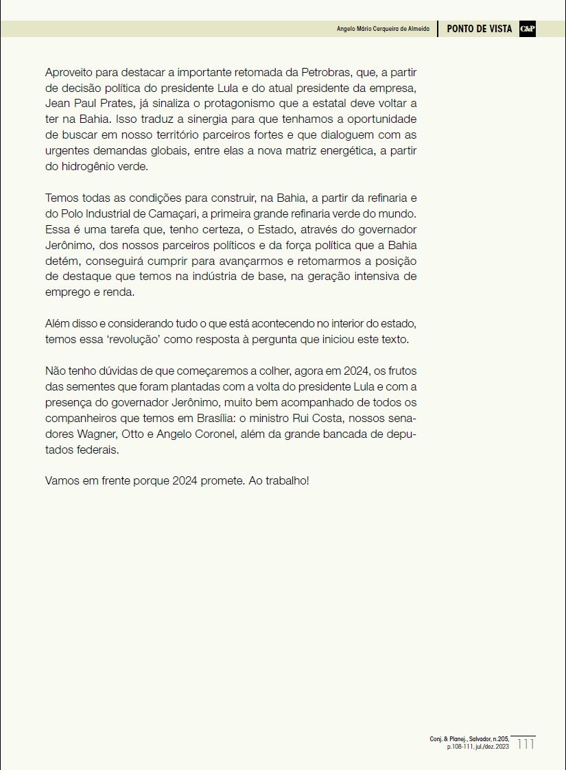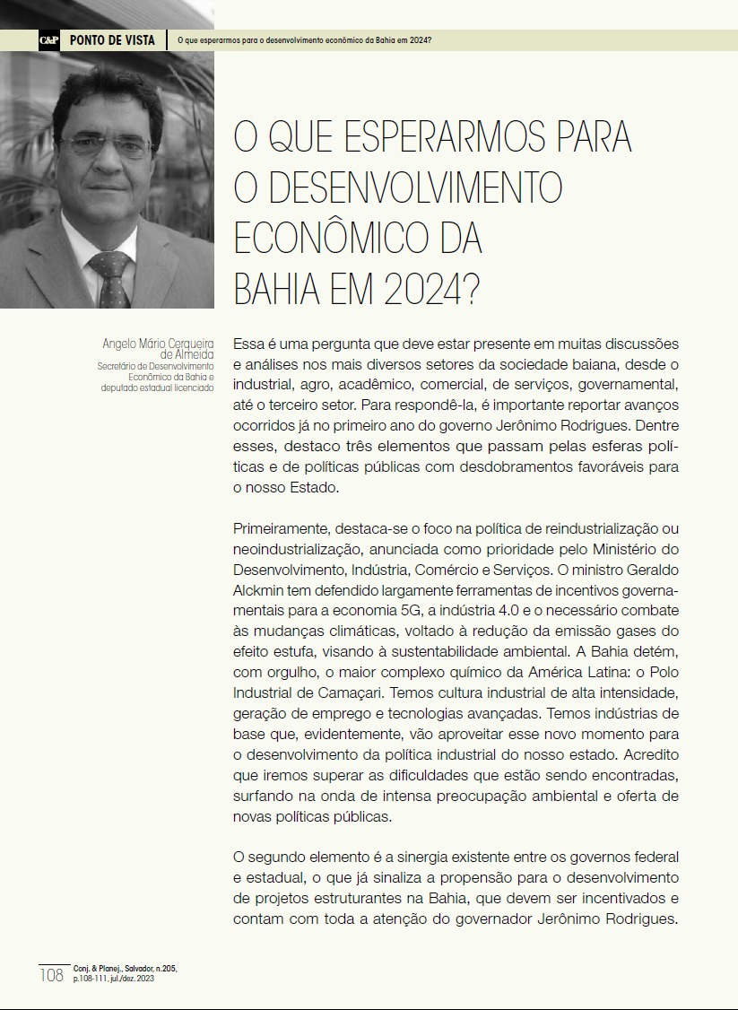 16/02/2024 REVISTA C&PArtigo Angelo AlmeidaO que esperarmos para o desenvolvimento econômico da Bahia em 2024? Galeria: