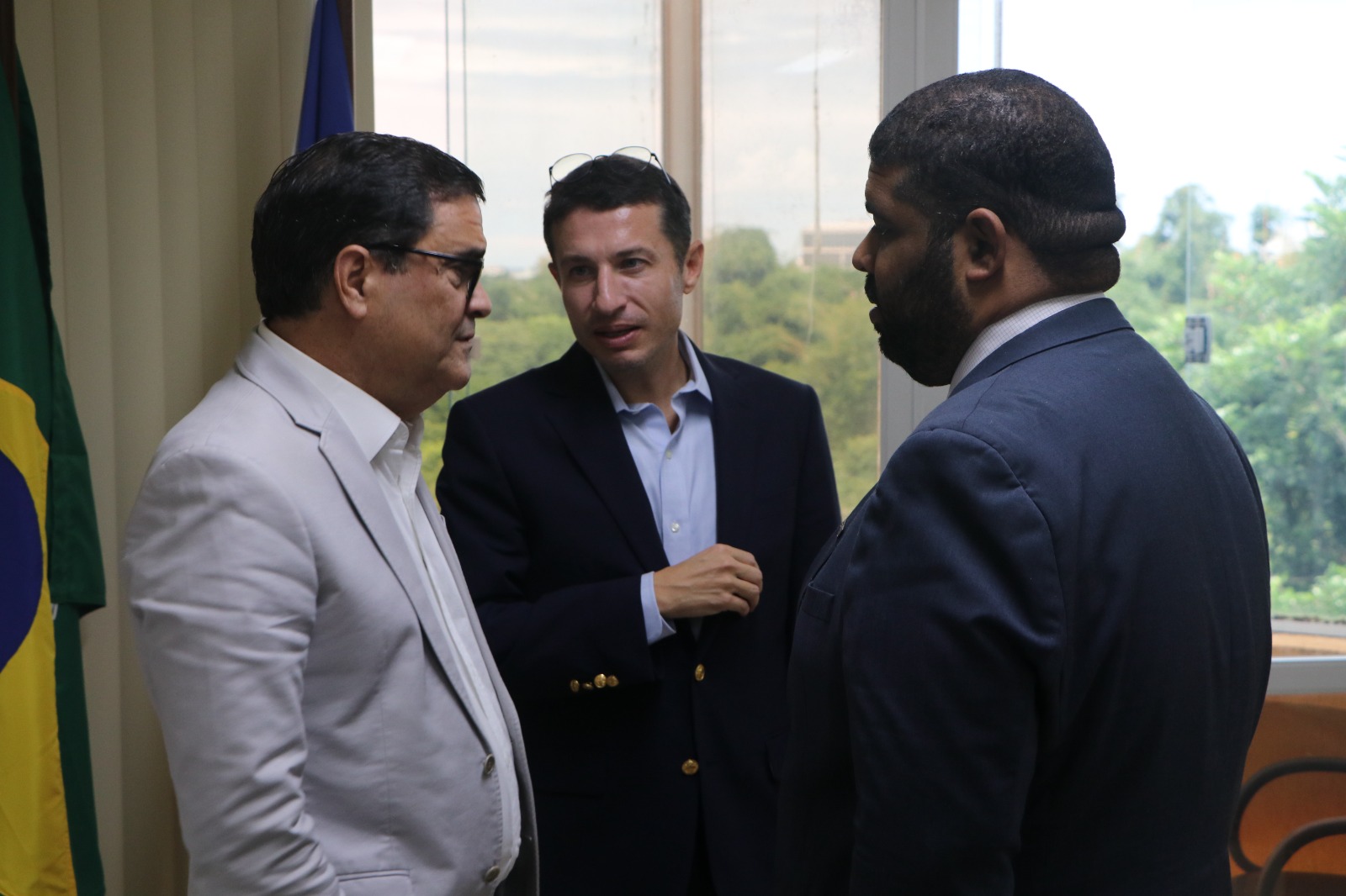 Cônsul Geral do Peru no Brasil, Carlos Garcia Castilho, foi recebido pelos secretários de estado Felipe Freitas (SJDH) e Ângelo Almeida (SDE), nesta quinta-feira (16)