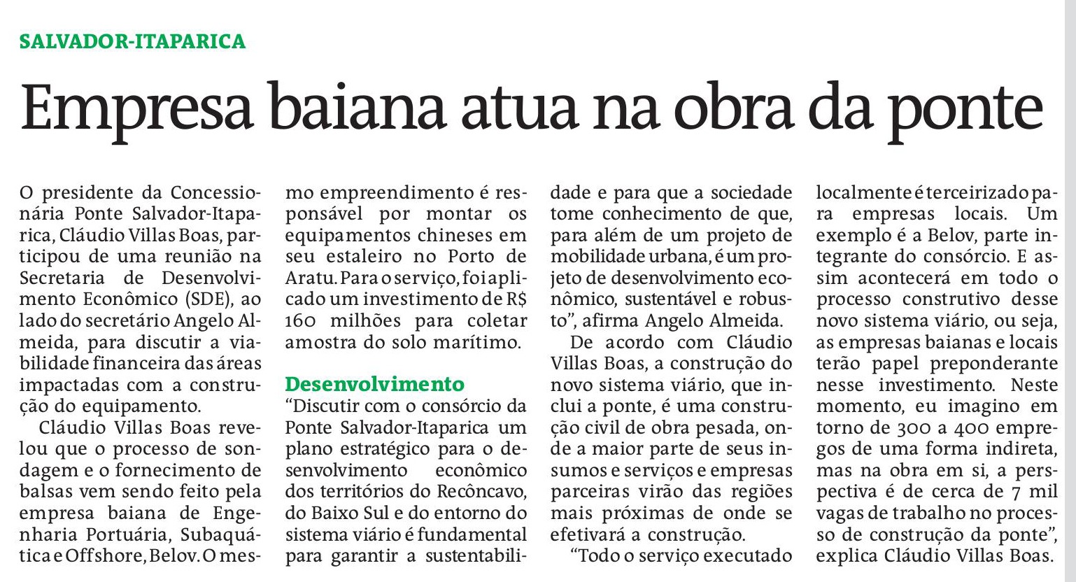 Empresa de engenharia baiana é uma das responsáveis por fornecer balsas e montar equipamentos para sondagem da ponte Salvador-Itaparica