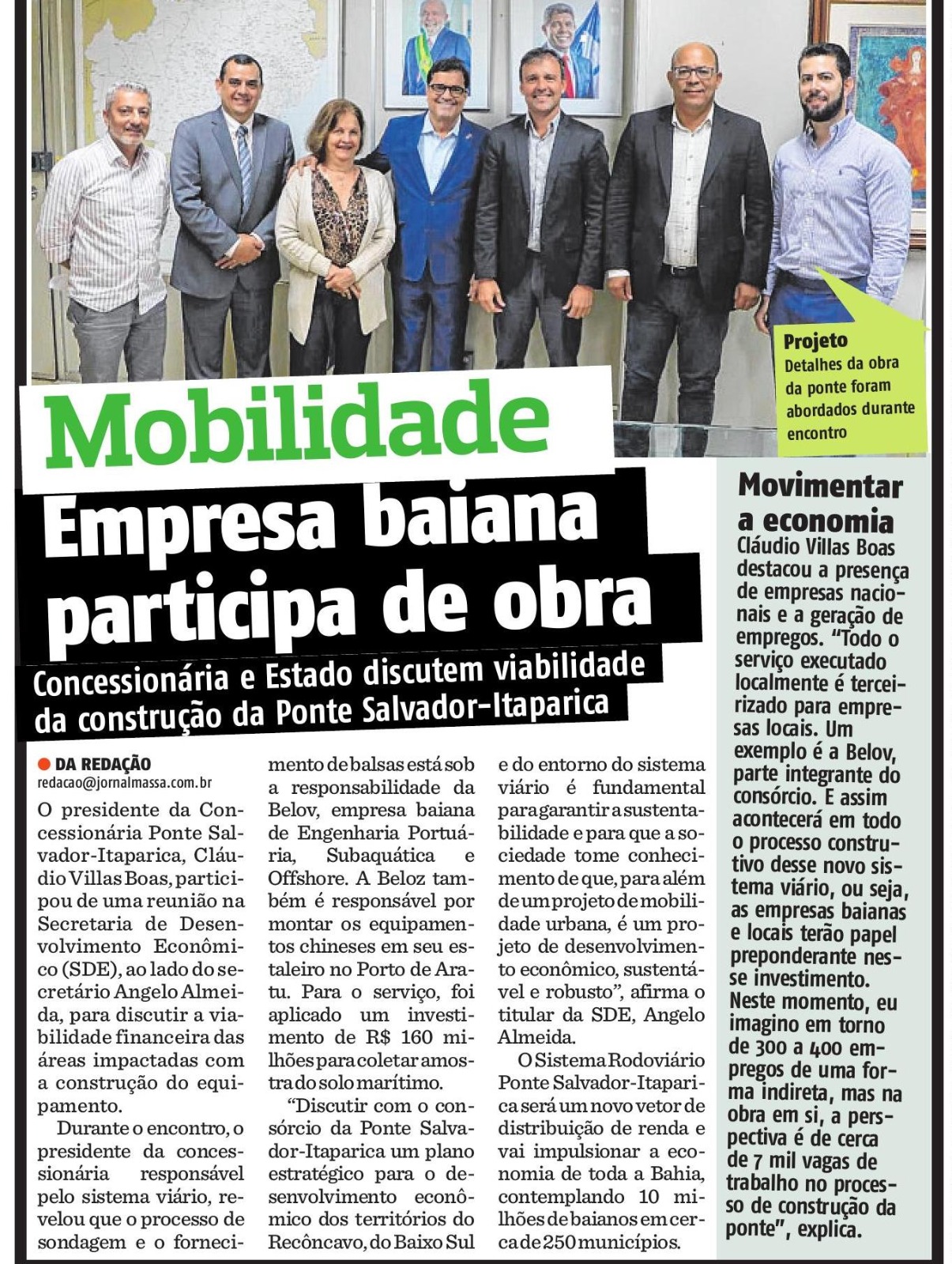 A informação foi passada pelo presidente da Concessionária da ponte durante reunião na SDE