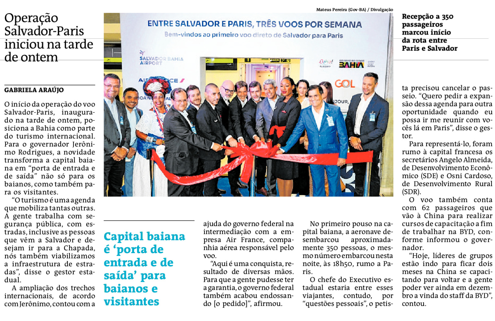 Novo voo direto para capital francesa foi inaugurado nesta sexta-feira, 28, em cerimônia solene