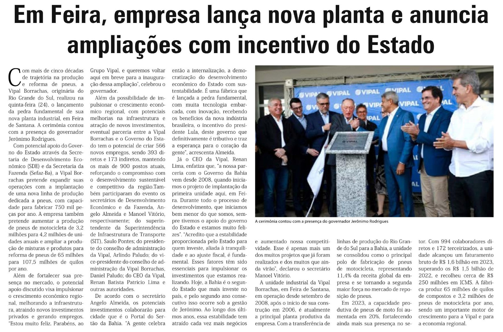 Em Feira, empresa lança nova planta e anuncia ampliações com incentivo do Estado
