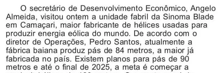 Maior pá eólica já produzida no país é fabricada na Bahia
