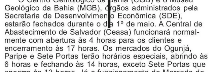 Confira o funcionamento dos equipamentos da SDE no dia 1º de maio
