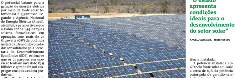 Dia Mundial do Sol: Até 2030, Bahia tem estimativa de alcançar 27 GW em potencial solar fotovoltaico