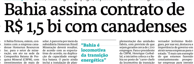 Bahia se destaca no cenário internacional de mineração com atração de empresa canadense que investirá mais de R$ 1,5 bilhão