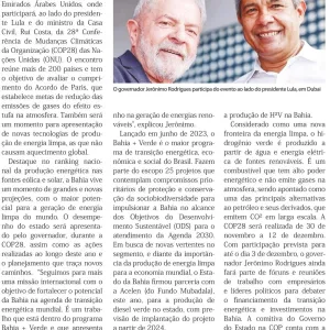 “A Bahia oferece ao Brasil e ao mundo uma forma nova e sustentável de geração de energia”, diz governador na COP-28