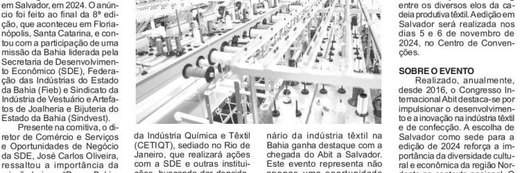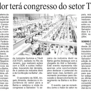 Salvador receberá Congresso Internacional da Associação Brasileira da Indústria Têxtil e de Confecção em 2024