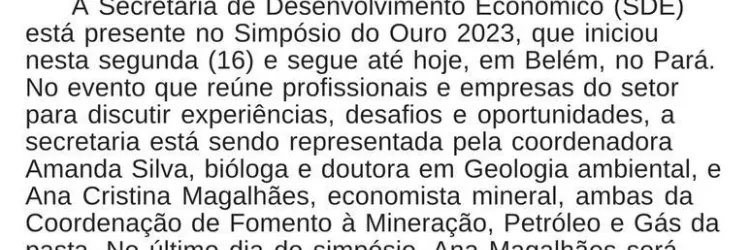 SDE discute o papel dos estados no desenvolvimento da mineração no Simpósio do Ouro 2023