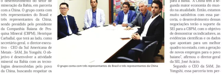SDE, CBPM, SEI e empresas chinesas formam grupo de trabalho com foco o desenvolvimento do setor de mineração da Bahia