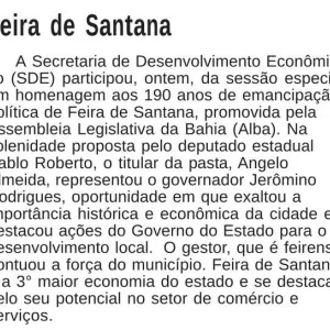 SDE celebra 190 anos de emancipação de Feira de Santana em sessão especial realizada em Brasília