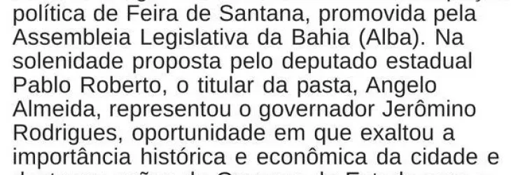 SDE destaca potencial econômico de Feira de Santana em homenagem na Assembleia Legislativa