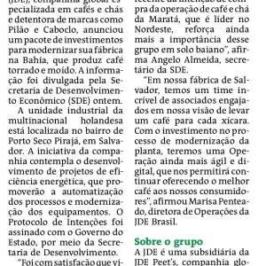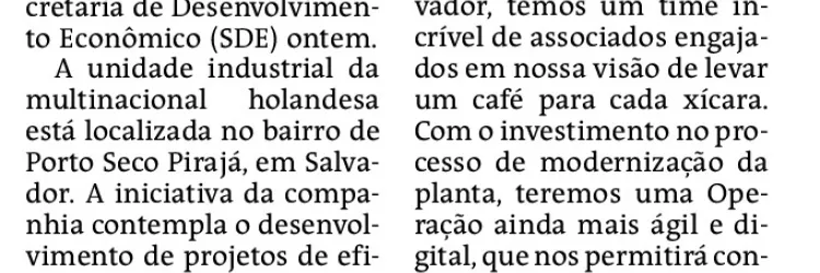 Fábrica da JDE anuncia projeto de modernização na Bahia