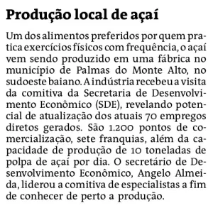 SDE articula ampliação de fábrica de açaí em Palmas do Monte do Alto
