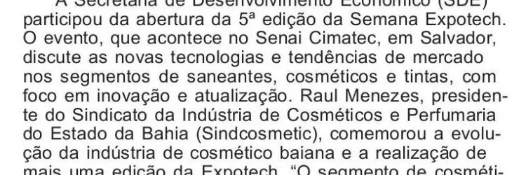 SDE participa de evento de inovação e atualização das indústrias dos segmentos de saneantes, cosméticos e tintas da Bahia