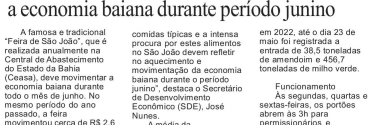 Feira de São João da Ceasa deve movimentar a economia baiana durante período junino