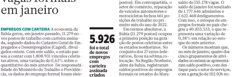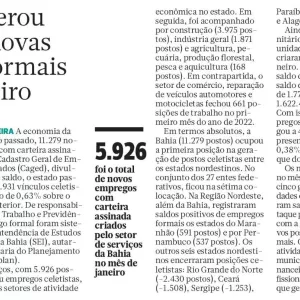 Bahia gera mais de 11 mil postos de trabalho em janeiro, comércio varejista registrou crescimento de 2,3%