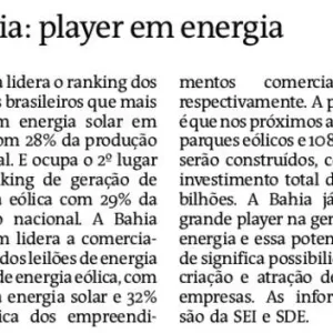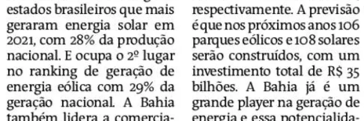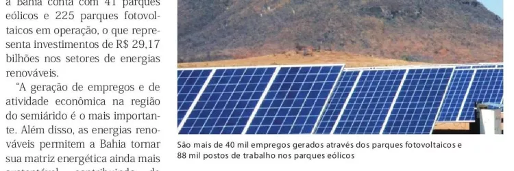 Bahia é líder nacional na geração de energia solar e segundo na de energia eólica
