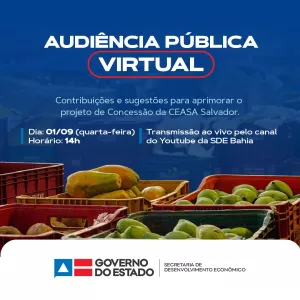 Governo realiza audiência pública virtual do Projeto de Concessão da CEASA